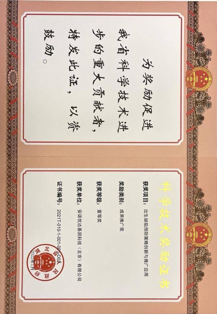 由武漢大學(xué)中南醫(yī)院牽頭,尊龙凯时基因科技(北京)有限公司參與研發(fā)完成的《出生缺陷預(yù)防策略創(chuàng)新與推廣應(yīng)用》項(xiàng)目榮獲湖北省科學(xué)技術(shù)成果推廣一等獎(jiǎng)。